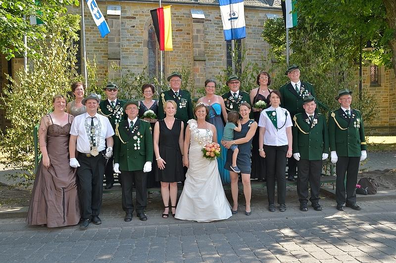 Marleen-Sophie Dolge, Birgit Dolge, Mundschenk Markus Descher, Jürgen Dolge, Königs-Adjutant Norbert Hansmeier. Dietlinde Kamphuis heisst die neue Regentin in Langenberg. Erstmals in der 142 jährigen Geschichte des Vereins konnte eine Frau den etwas übergewichtigen Aar mit dem 219. Schuss bezwingen. Die 63 jährige MTA aus Langenberg wirbelte doch eine Menge „Staub“ auf, hatte man manchesmal doch den Eindruck, der Vogel sei mit Sägemehl gefüllt. Und letztendlich musste er dann doch aufgeben, und den Weg frei machen für „Linda“ die erste von Langenbergs Gnaden. Weitere Info und