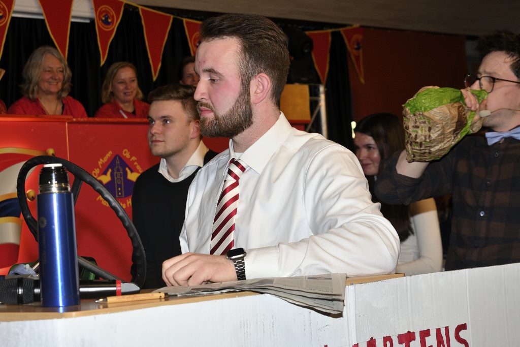 Auch der Schützenthron 2025/26 sowie Bürgermeister Leonhard Joseph von Moor zu Felde wurden herzlich begrüßt. Sketche, Büttenreden und Beiträge wie „Die Betschwestern“, „Die 2 Dicken und der Rest“ oder die AKC Konfetti Clique sorgten für viele Lacher im Saal.